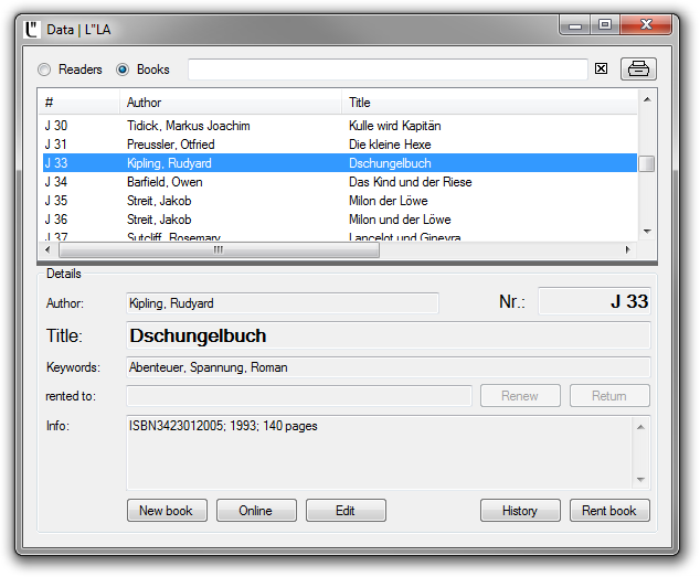 LiLA ist mehrsprachig, die Screenshots sind jedoch nur in englischer Sprache verfügbar. Sreenshots: Übersicht DatenhaltungSchüler 1 Schüler 2 Bücher 1 Bücher 2 Online-Daten