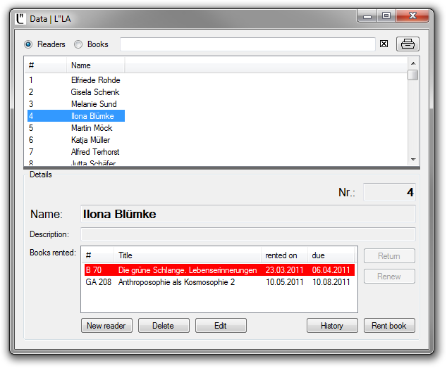 LiLA ist mehrsprachig, die Screenshots sind jedoch nur in englischer Sprache verfügbar. Sreenshots: Übersicht DatenhaltungSchüler 1 Schüler 2 Bücher 1 Bücher 2 Online-Daten